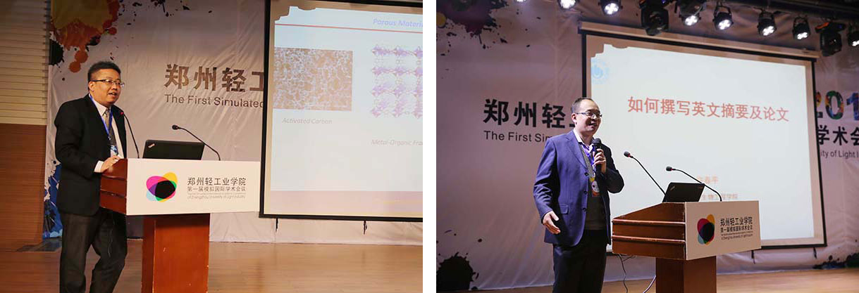 在模拟国际学术大会上,杜淼教授作了题为Metal-Organic Frameworks (MOFs): A Promising Type of Porous Materials(金属有机骨架:一种新兴的多孔材料)的学术报告;许春平教授作了题为How to write English abstract and paper如何写英语摘要和论文)的学术报告。随后,材料与化学工程学院的刘萌、食品与生物工程学院的解慧芳、机电工程学院\能源与动力工程学院的仝高强3位研究生用英语进行了优秀论文宣讲交流。会上,校领导还为17位获得优秀论文的作者颁发了奖励证书。